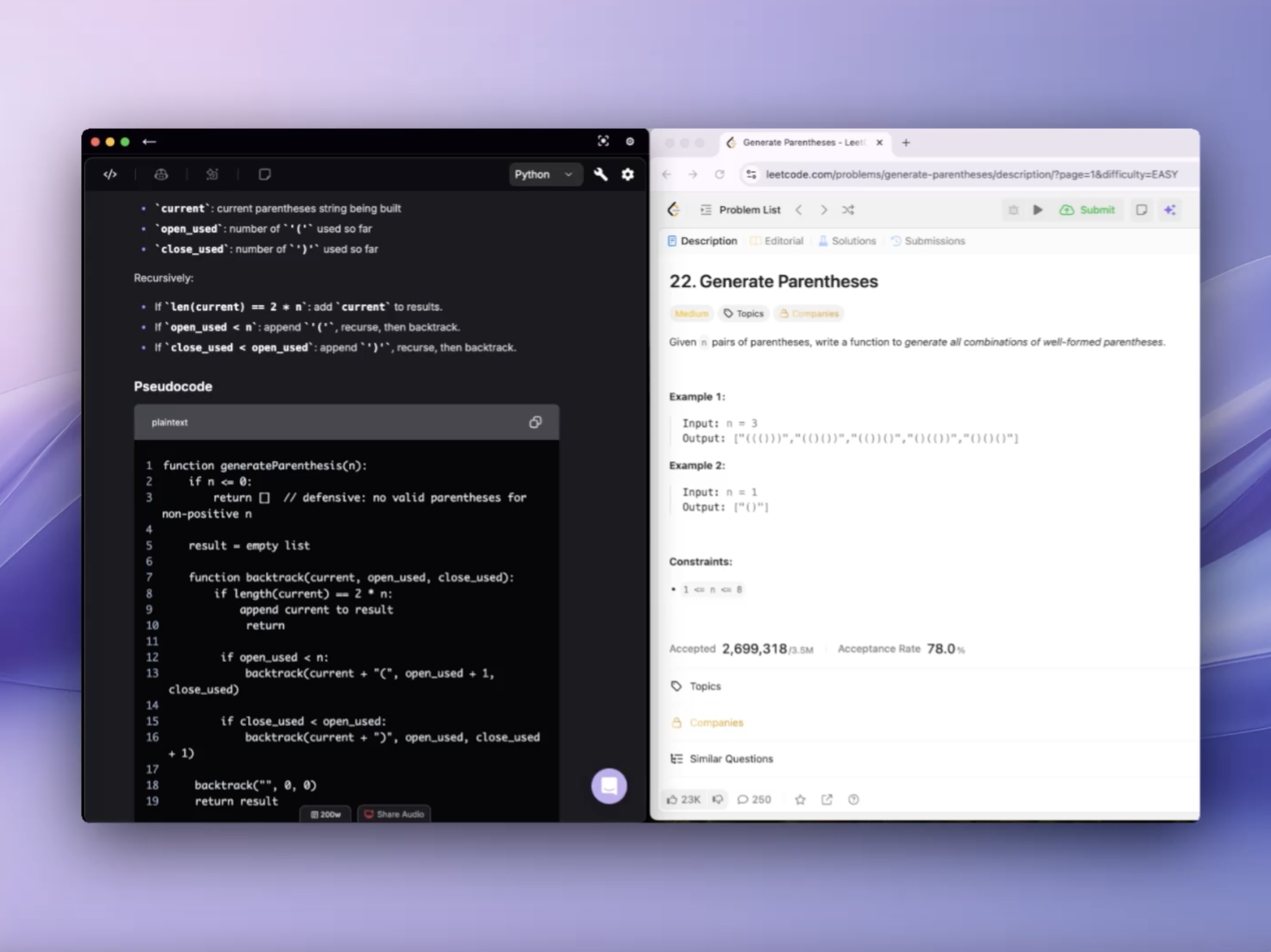 View Interview Copilot and Coding Interpreter side-by-side instead of switching between tabs. This lets you reference copilot suggestions while working on coding problems simultaneously. Hotkey: Cmd + / (Mac) or Ctrl + / (Windows) Learn more about split screen mode.